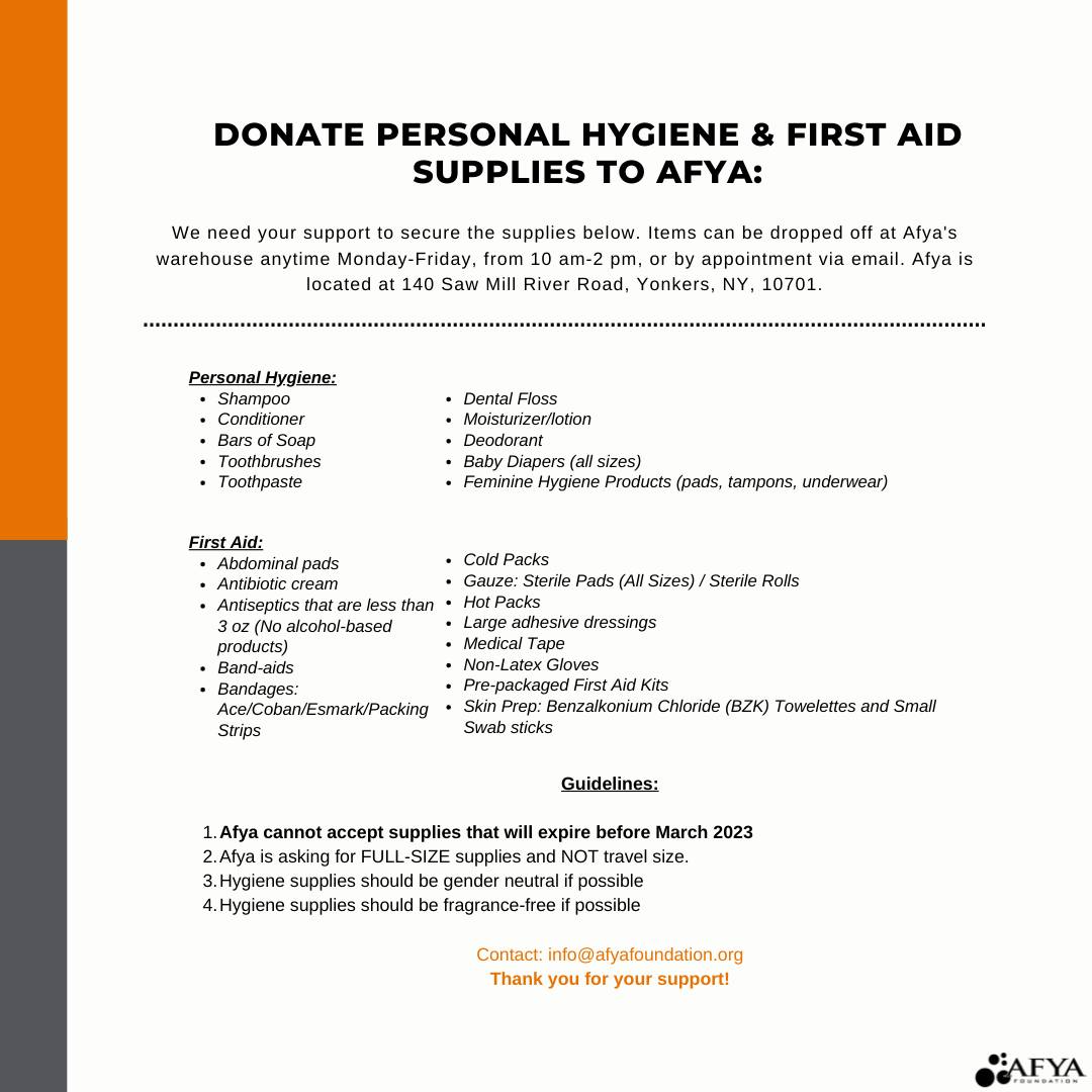 AFYA is now accepting supplies: