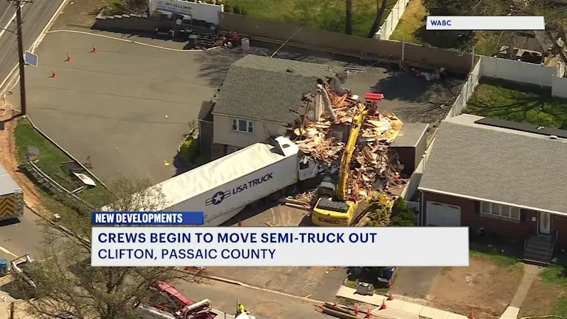 Fire occurs as tractor-trailer remains logged inside Clifton building