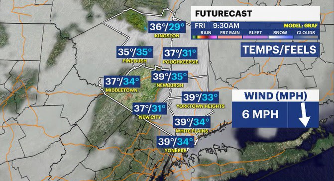 THURSDAY: Mix of sun and clouds. Highs: low to mid-30s. Lows: upper 10s to low 20s.