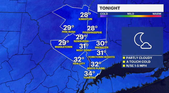 TONIGHT: Partly cloudy with barely a breeze. Lows: upper 20s to mid-30s.