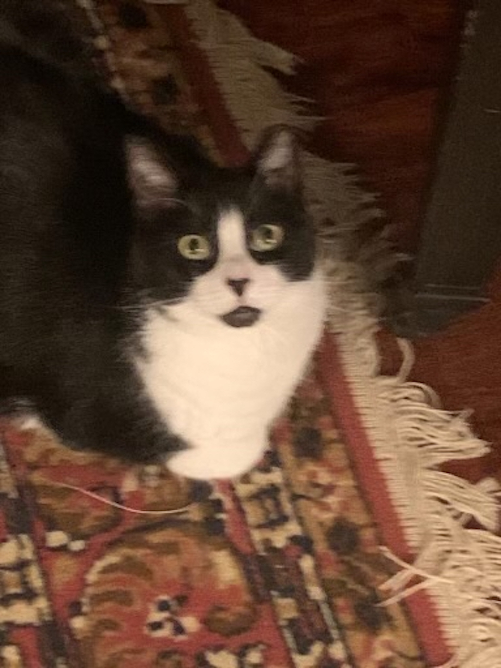 “He’s a rescue,” said Evan Yan. “He is black and white and doesn’t have a collar on. He has a black chin strap.”