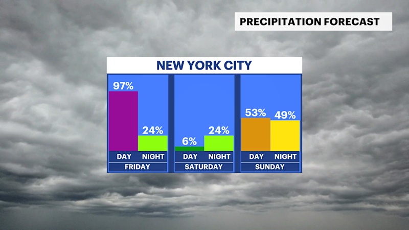 Soaking rain arrives for Friday, with a coastal storm nearing New York City on Sunday.