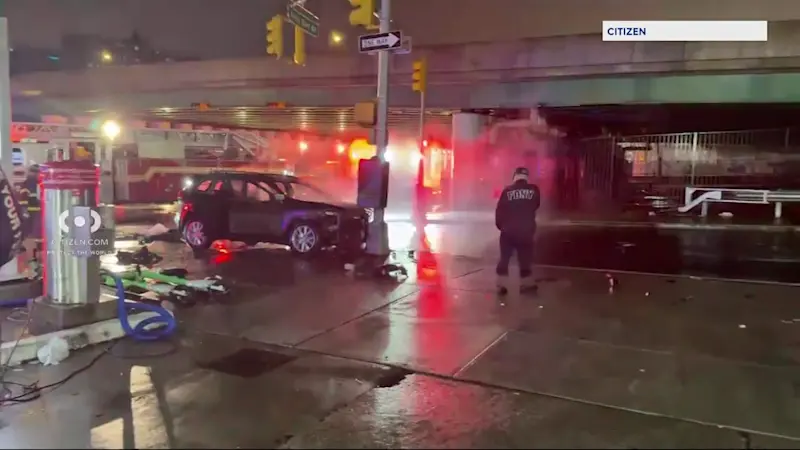 Story image: Car fire erupts on Bruckner Boulevard in The Bronx