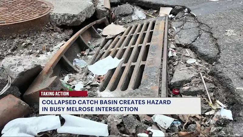 Collapsed catch basin creates hazard in busy Melrose intersection