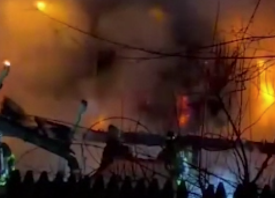 Viewer images from the scene show the house was fully engulfed in flames and suffered significant damage.