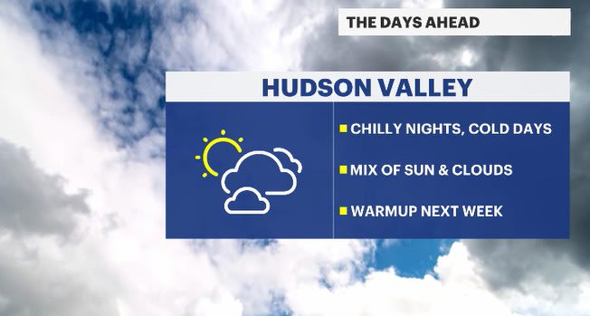 THURSDAY: Mostly cloudy. Highs: low to mid-40s. Lows: low 30s.
