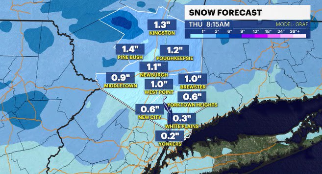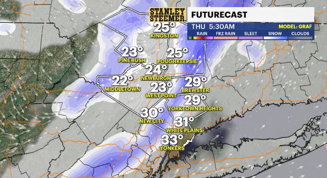 A system will move into the Northeast and exit the region Thursday morning, bringing snow showers closer to the midnight hour with light snow falling overnight.