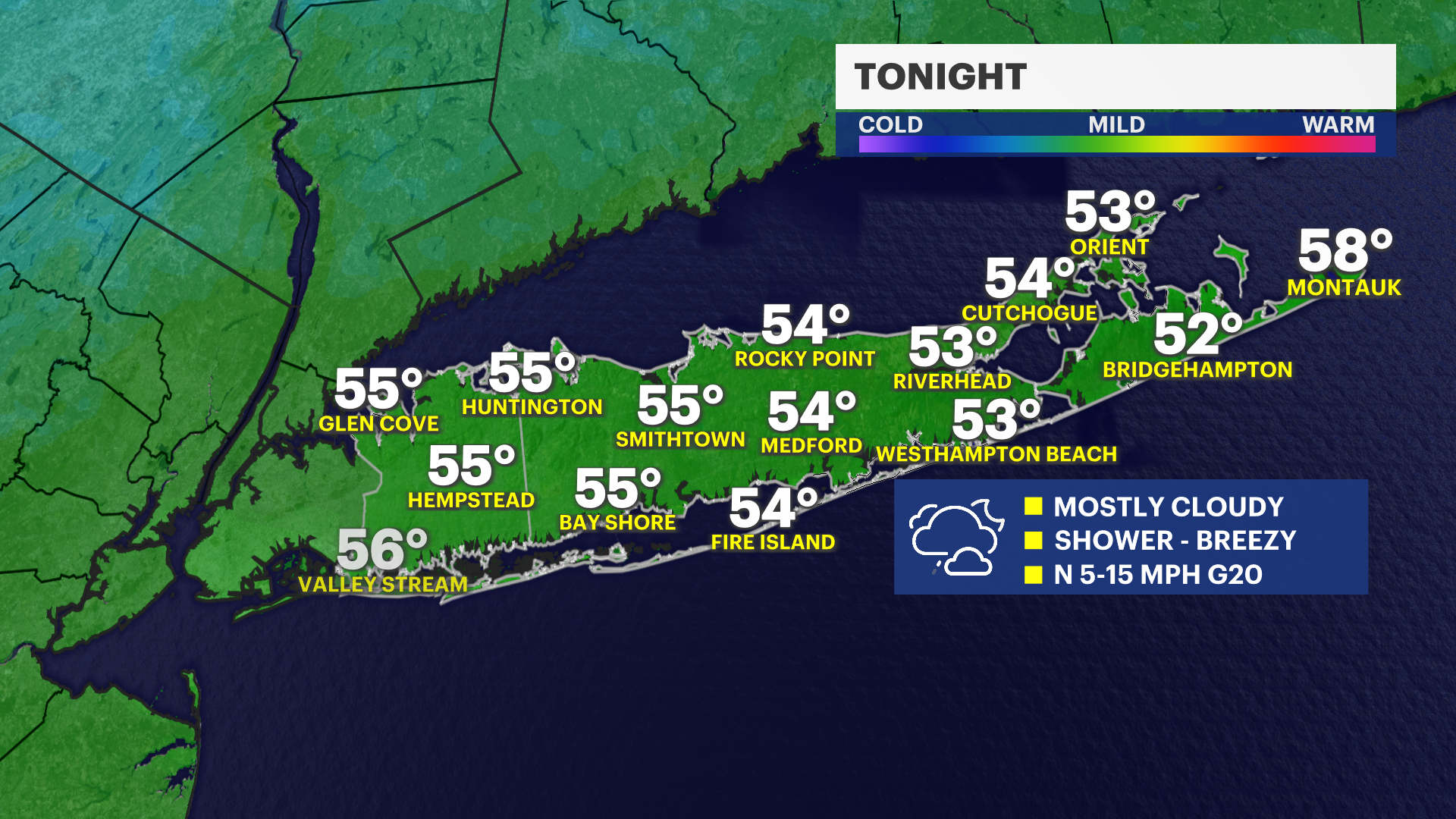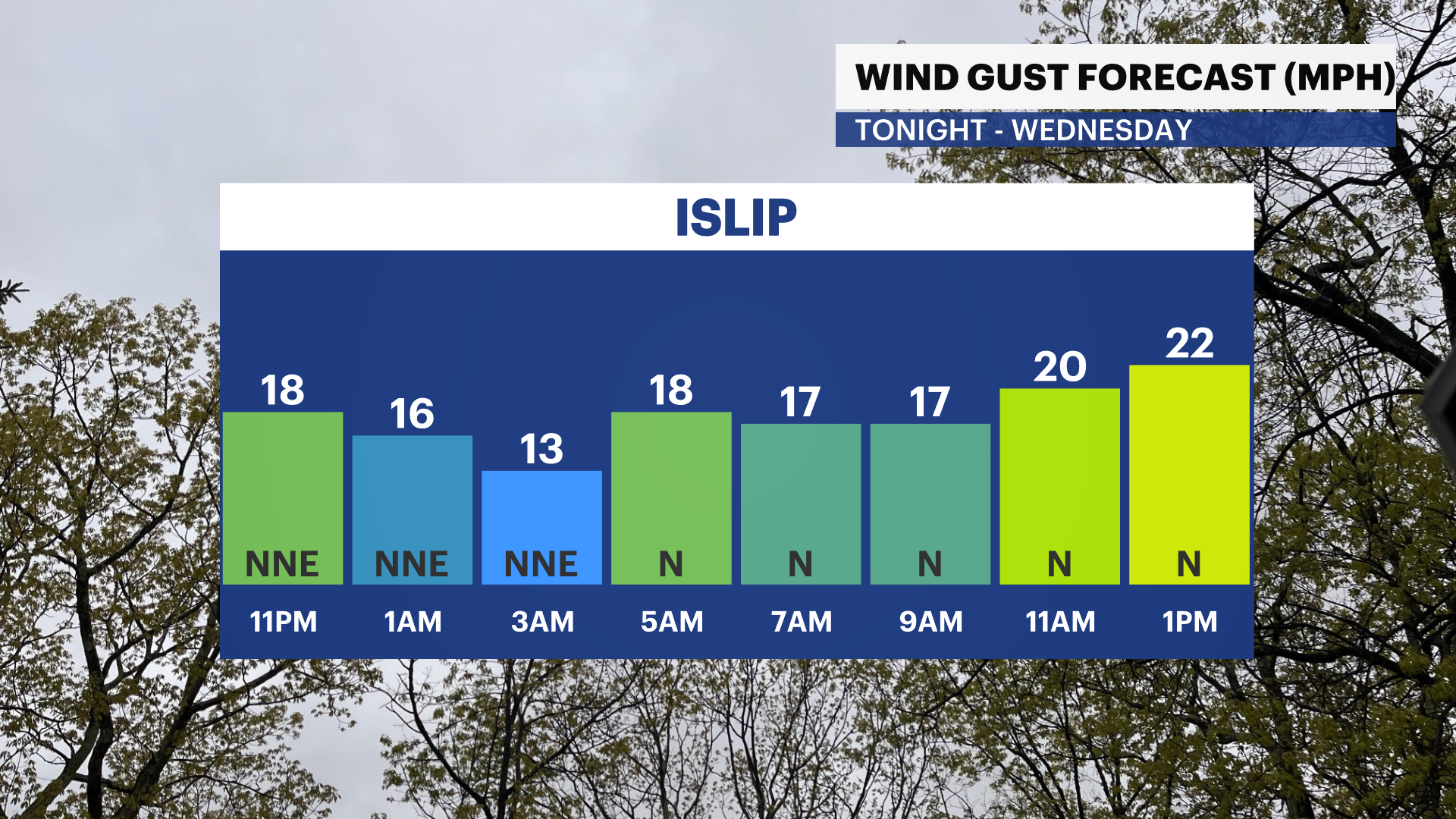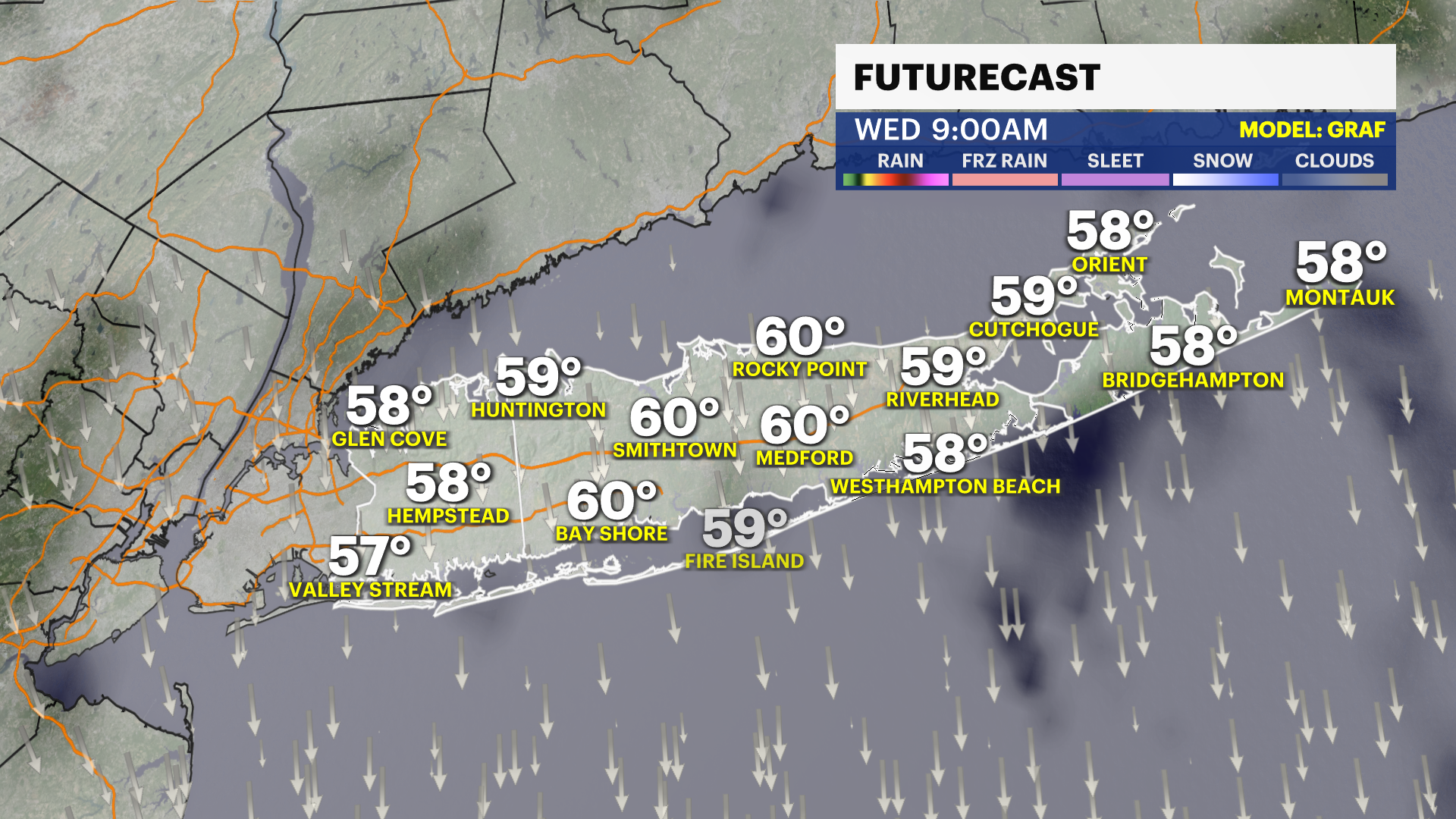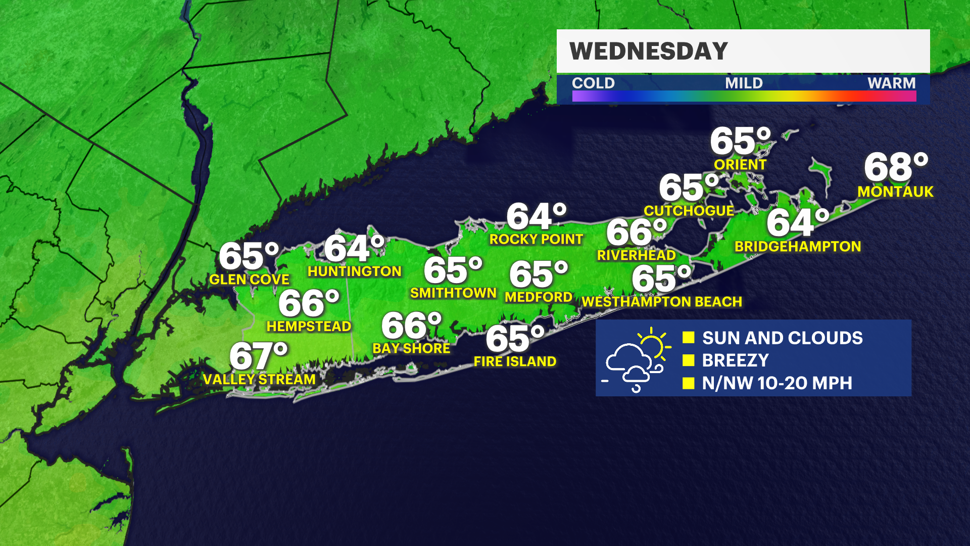 NEXT: Heading into Wednesday, Long Island will finally see the return of some sunshine! Expect a mainly cloudy start to the day, but more sun will break out into Wednesday afternoon. It will still be a little breezy, but overall, a nice day.