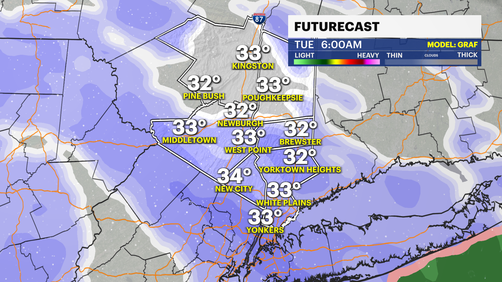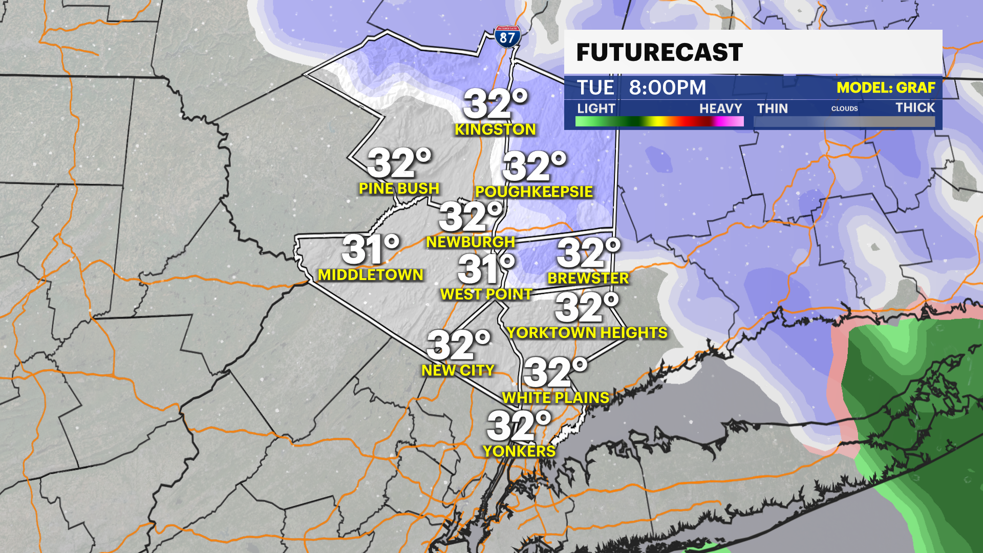 Rain and snow showers are expected. Total snow accumulation will be a trace to 2 inches. A few spots in the upper Hudson Valley will see 2-4 inches.