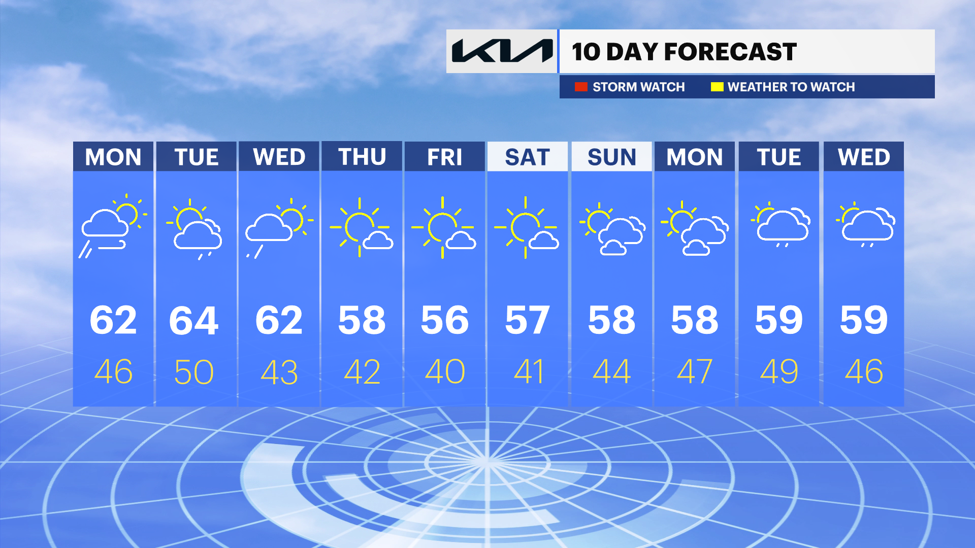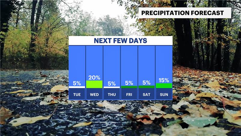 Rest of the Week: Dry and seasonable weather returns Thursday through the weekend, with mostly sunny skies and highs in the mid-to-upper 50s. Nights will be cool, dipping into the low 40s.