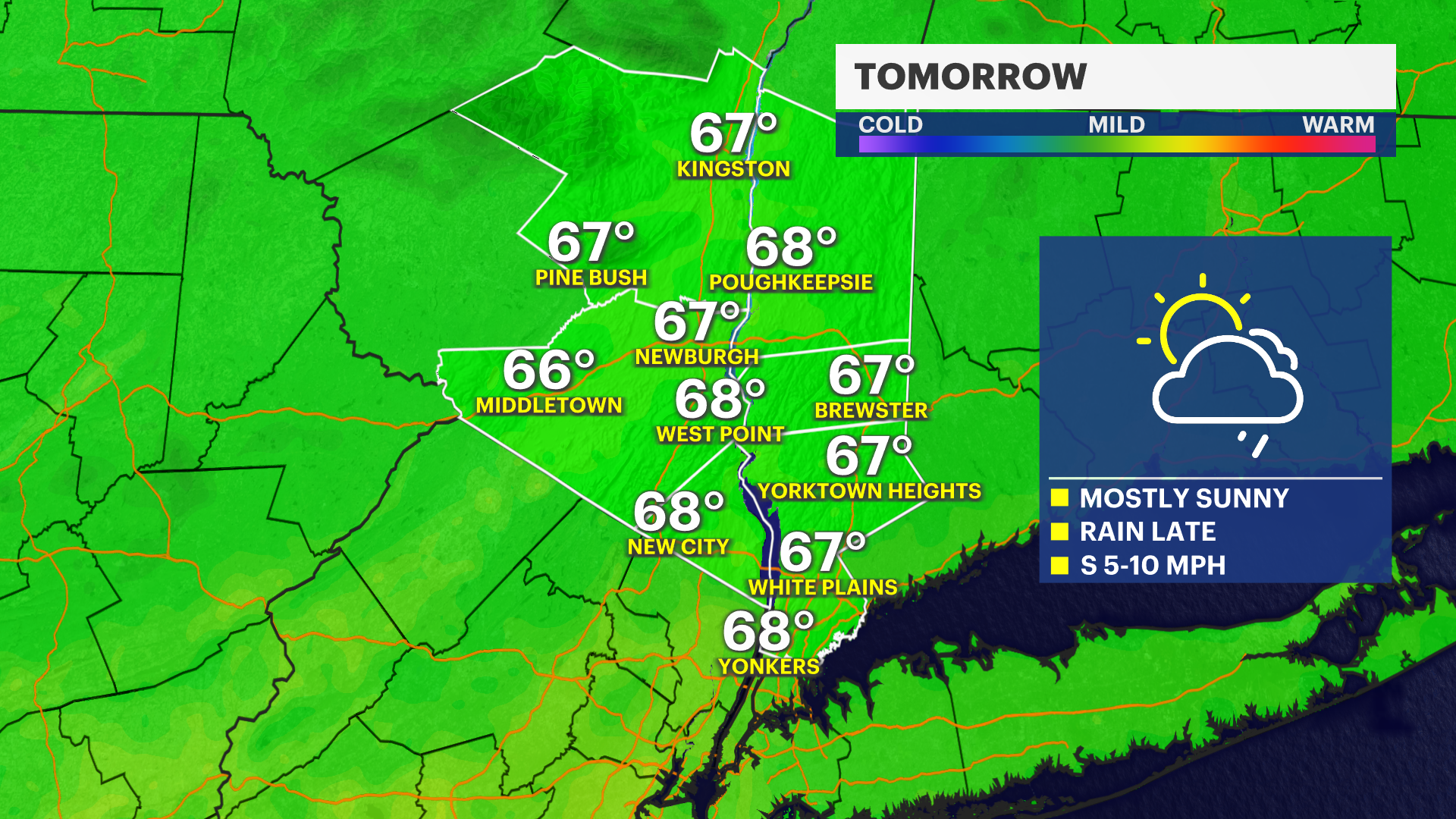 Tuesday: Plenty of sunshine and a pleasant afternoon with highs the mid-60s.