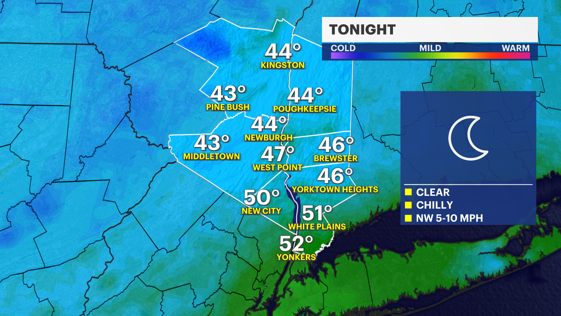 Saturday: Sunny and seasonable. Highs near 79, lows near 63.