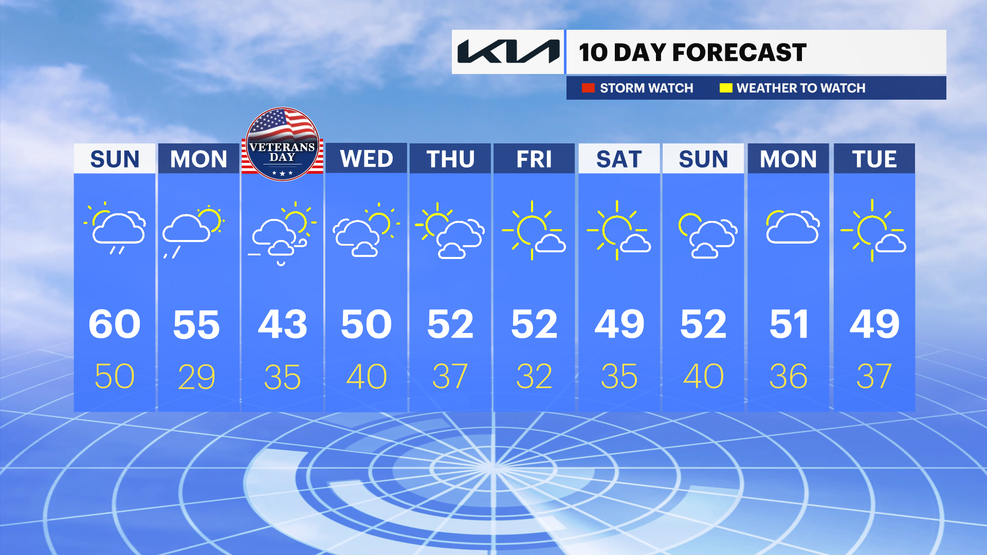 Cold and windy for Veterans Day. Morning lows near 30 but wind chill values will be in the 20s. Afternoon highs in the mid 40s. Winds 15-25 mph, occasionally gusting over 35 mph.