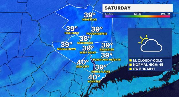 Late today and into Saturday morning, a weak disturbance to the south will try to bring some snow showers toward the lower counties of the Hudson Valley. Portions of Westchester and Rockland counties could see flurries move in late tonight with snow showers overnight into early Saturday morning.