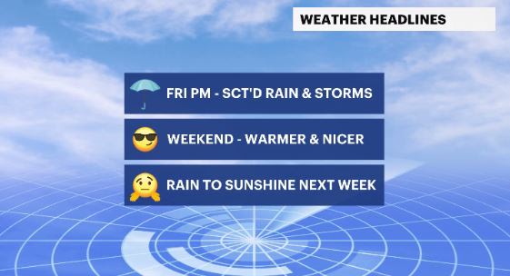 WHAT'S NEXT: The weekend ahead is warmer and drier. The first half of next week will see the return of showers.