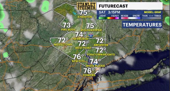 News 12 Storm Watch Team Meteorologist Addison Green says the Hudson Valley will see a mix of sun and clouds on Saturday with temperatures in the mid-70s.