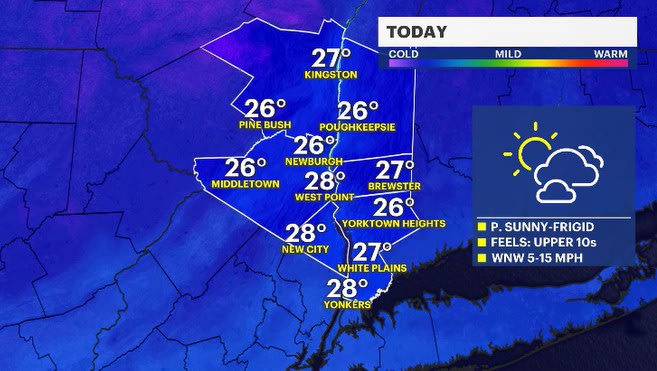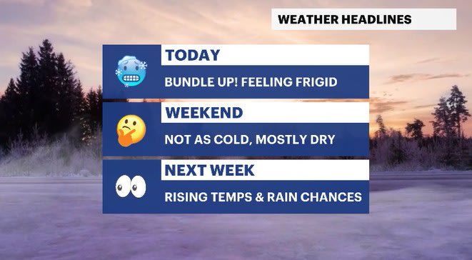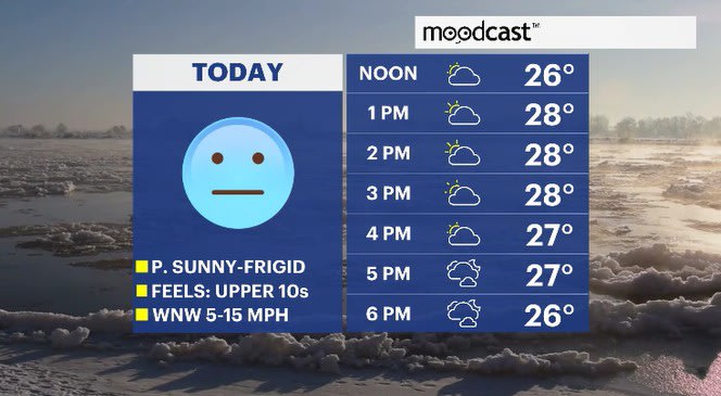 TODAY: Mix of sun and clouds, feeling frigid especially in the morning. Highs: mid-to-upper 20s.