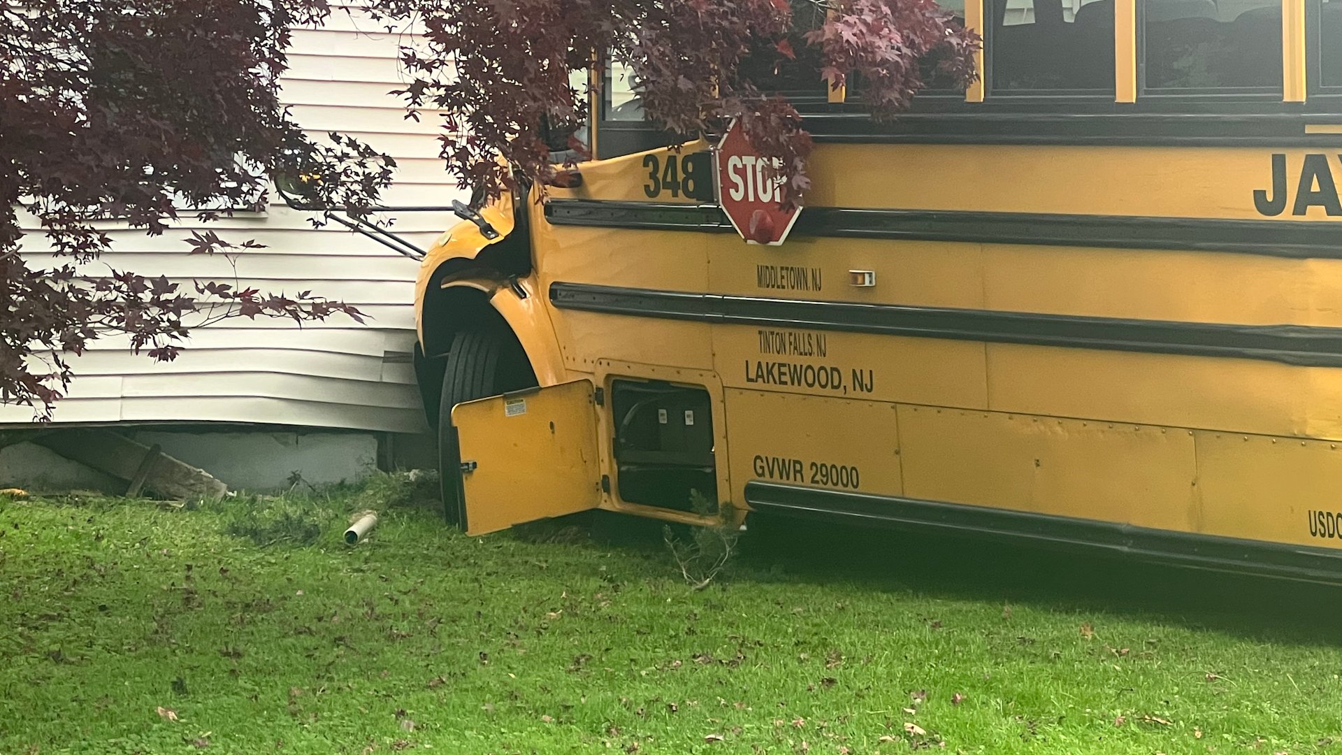 A school bus crashed into a home in Howell on Tuesday, Nov. 7, 2023. (Photo: Isabel Litterst/ News 12 New Jersey)