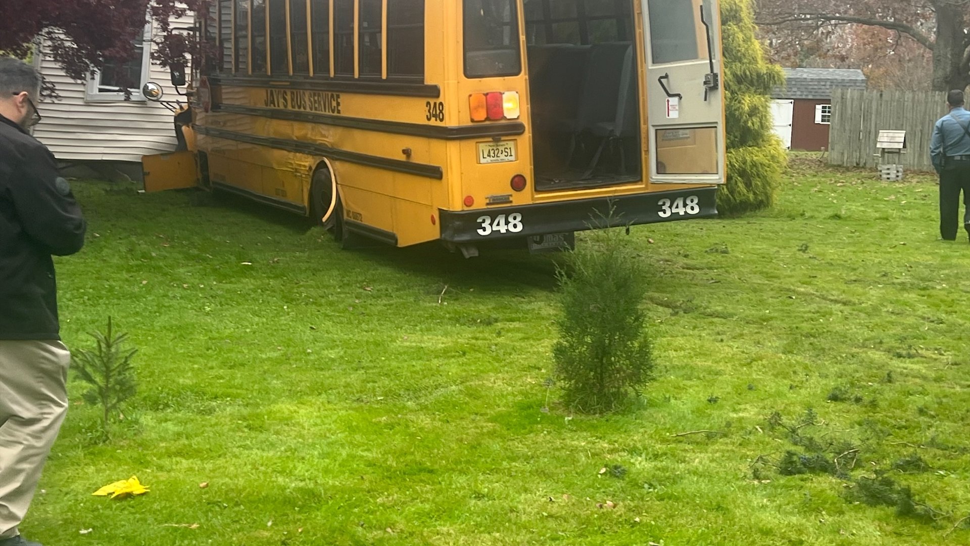 The bus knocked over a mailbox and hit a utility pole before slamming into the corner of the house. One neighbor told News 12 New Jersey that he heard a “loud bang.”