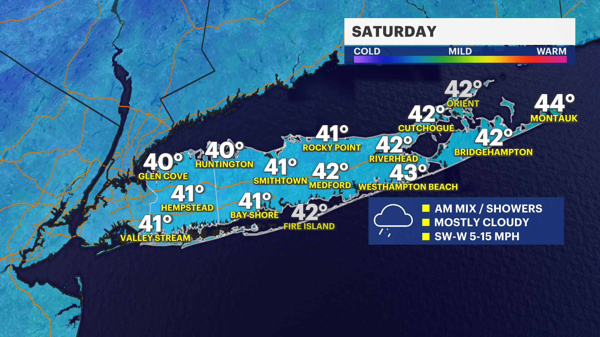 WEEKEND: Wet start, drier brighter finish. Highs in the high 30s and low 40s, lows in in the high 20s and low 30s.