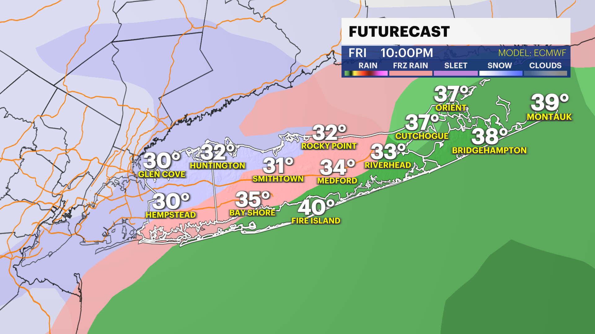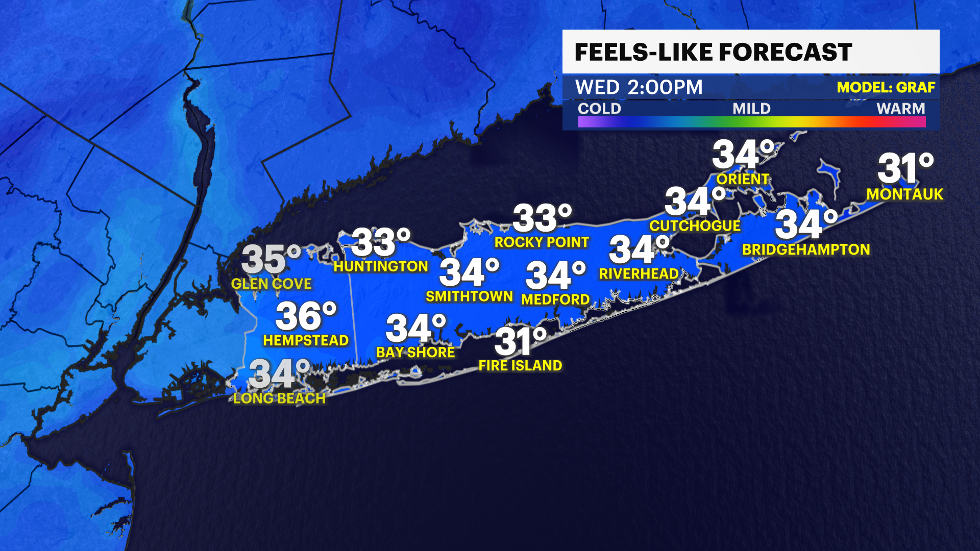 There is also still a slight chance for mixed light snow and rain showers between Friday evening and Saturday morning. A light coating of snow cannot be ruled out just yet for Friday evening. Better information on this chance will arrive Wednesday for Long Island. There is still about equal chance as of this evening of it remaining mostly dry.