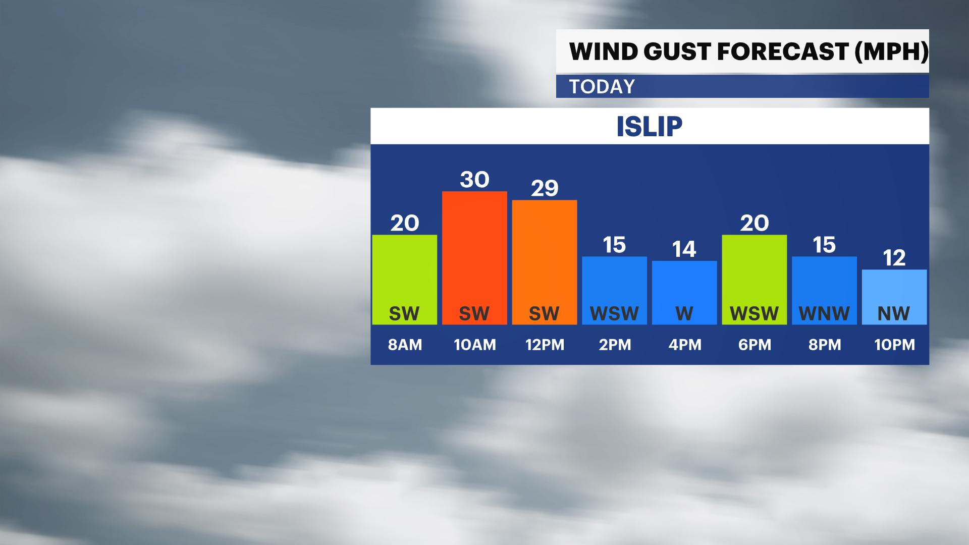 Inland parts of Long Island could reach the 70s while coastal areas remain a few degrees cooler by Wednesday. A cold front may bring scattered showers and thunderstorms late Wednesday into early Thursday.