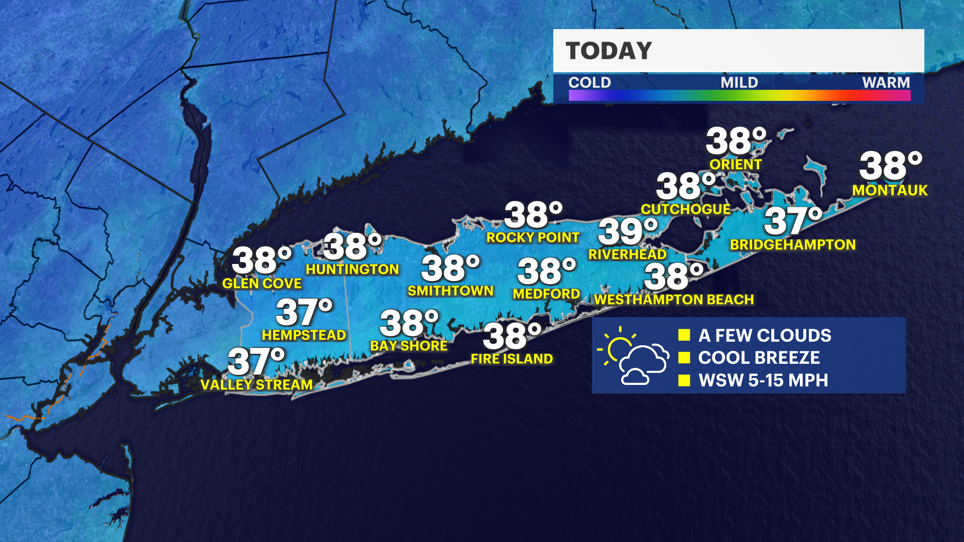 Sunny and cold to start, then pleasant in the afternoon. Highs in the upper 30s.