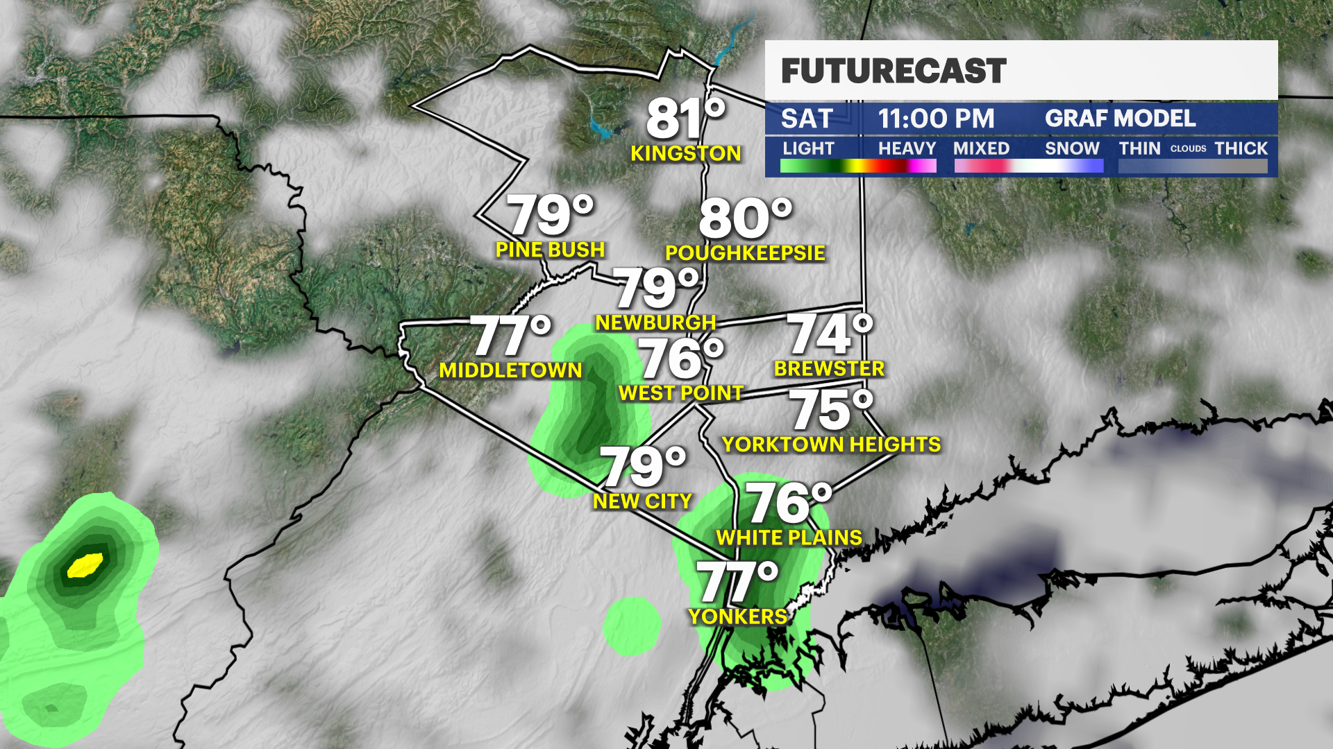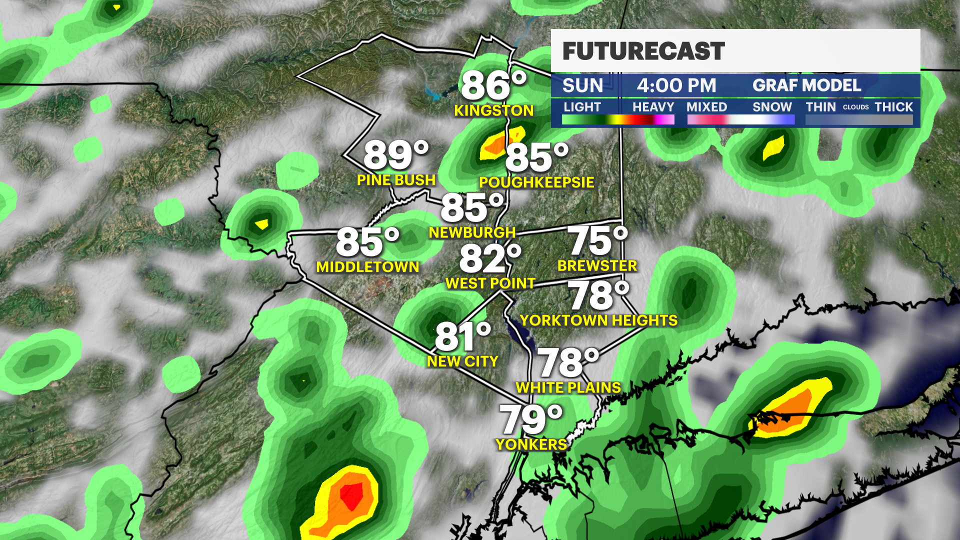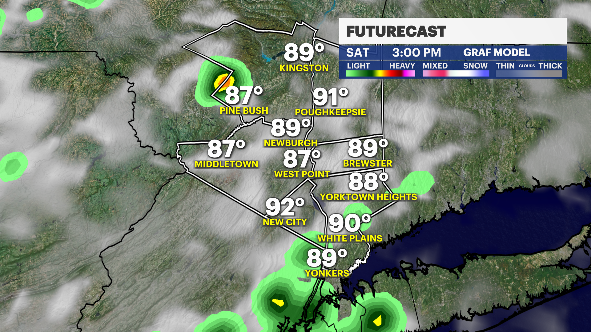 NOW: Storms are popping up across the Hudson Valley and producing lightning and heavy rain. Localized flooding is possible with these until about 9 p.m.