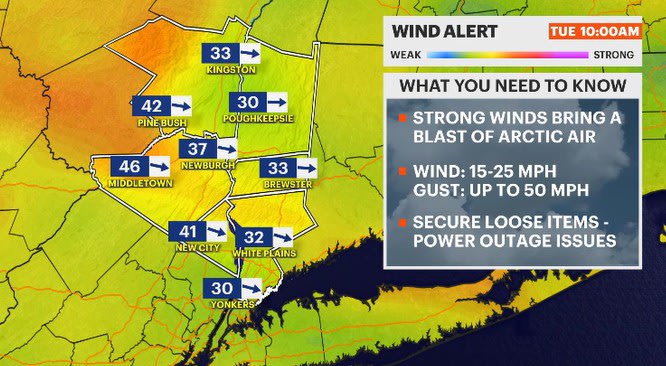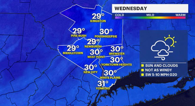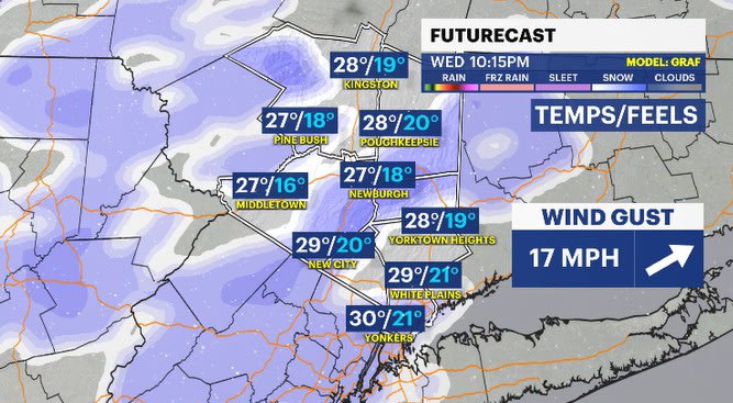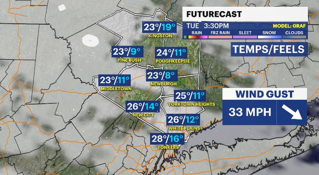 Hold on to your hat, everyone! And along with the hat, don't forget the thick winter coat, gloves, & scarf. You'll need several winter accessories as we have frigid air RACING through the Hudson Valley today!