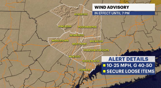 Wind Advisory For the entire Hudson Valley In effect until 7 p.m. today (at the latest)