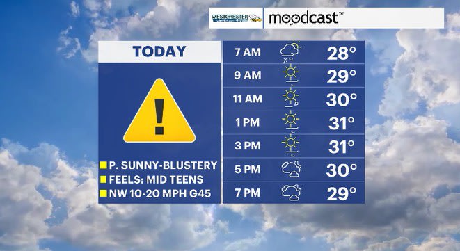 TODAY: WIND ALERT - Mix of sun and clouds with strong gusts at times & frigid feeling temps. Highs: upper 20s to low 30s. Lows: low 20s.